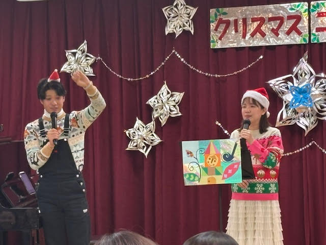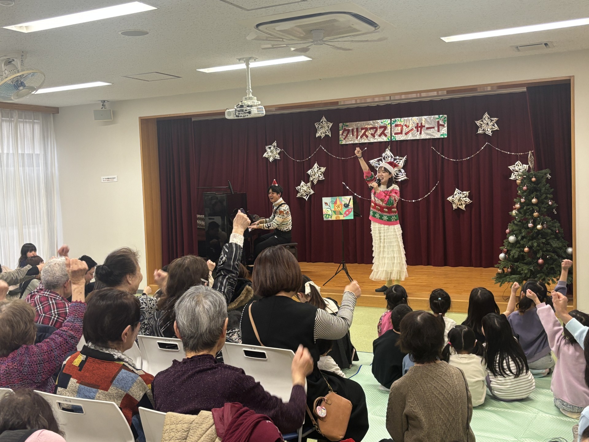 ひろばでも大人気の山﨑拓未と音のなかまたちによる、コンサートが開催されました。子ども番組の歌のお姉さんそのもののようなさわやかな歌声のまほお姉さんと、自在なピアノ演奏のたくみお兄さんがきんぎょひろばに初登場。テレビでおなじみの歌やディズニーメドレー。さらにじゃんけんリクエストでは、アニメや懐メロ、洋楽まで即興でアレンジしてピアノ演奏してくださり会場は大盛り上がり。ちょっと早いすてきなクリスマス気分のひと時となりました。