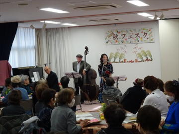 ボーカル田村エナさん と ピアノ二村希一さんとバス山村隆一さん による ラテンの情熱的で温かい音楽を楽しめました。 |