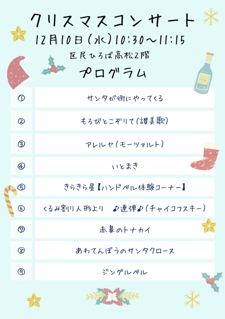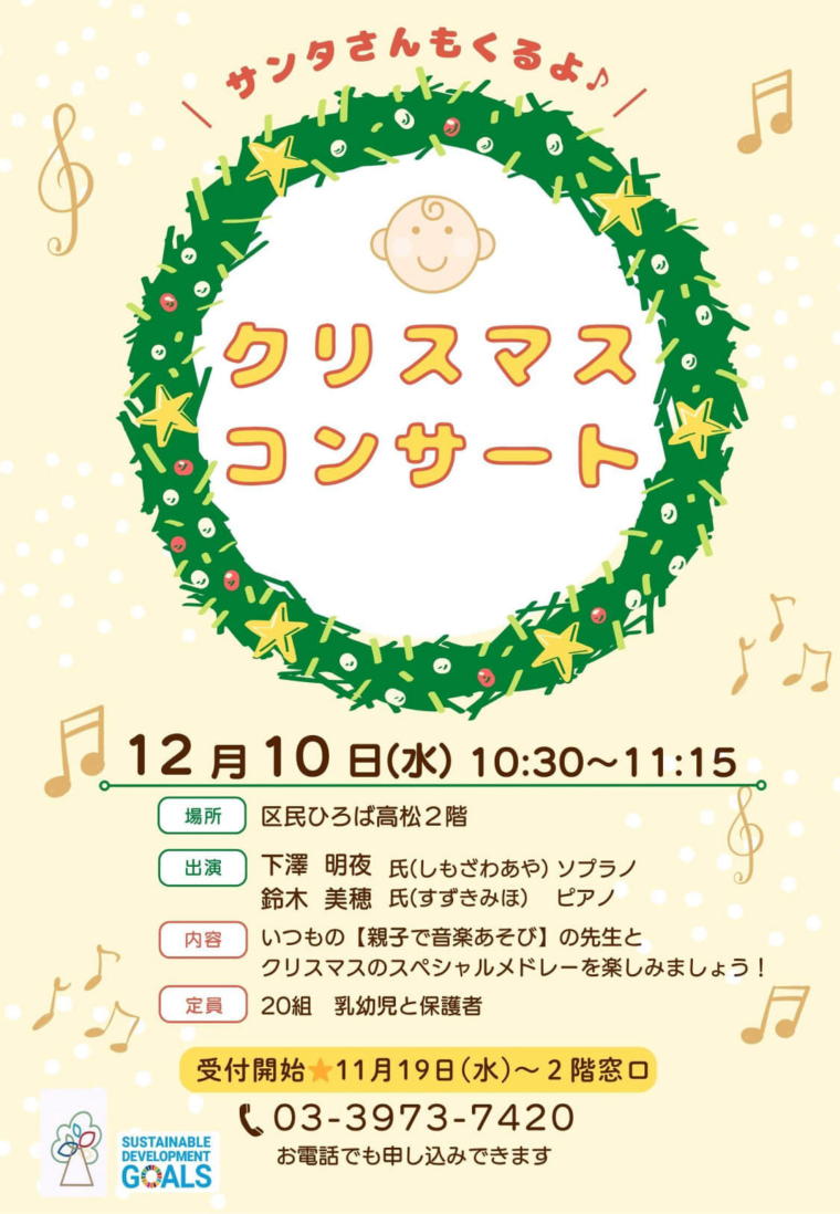 クリスマスコンサート のご案内 ひろば子育てプログラムの事業企画です。