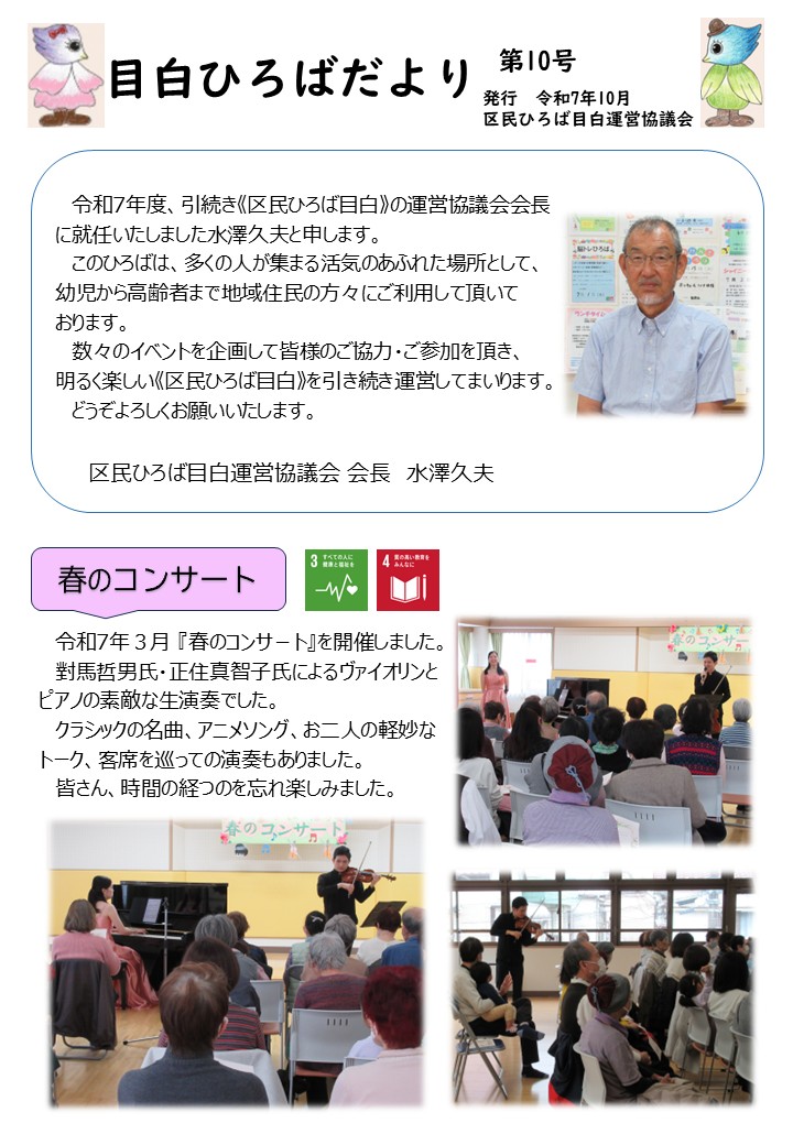 区民ひろば目白の広報誌「目白ひろばだより」は、令和3年度より年2回発行し、