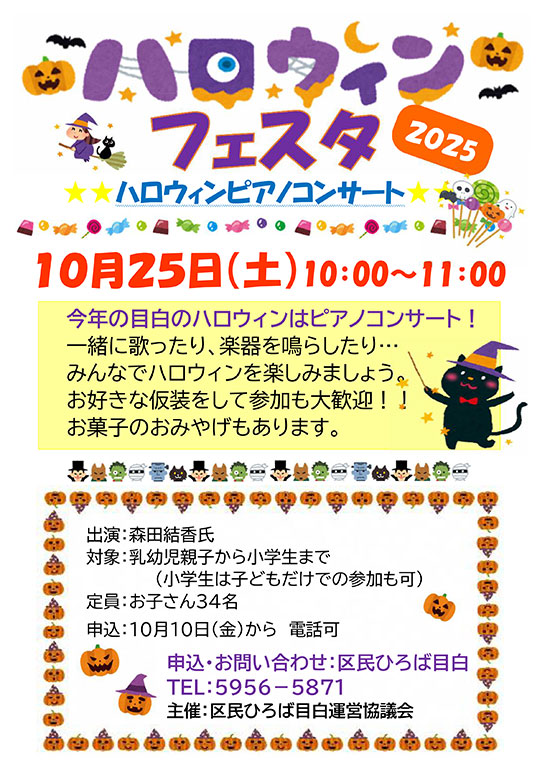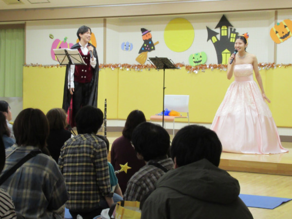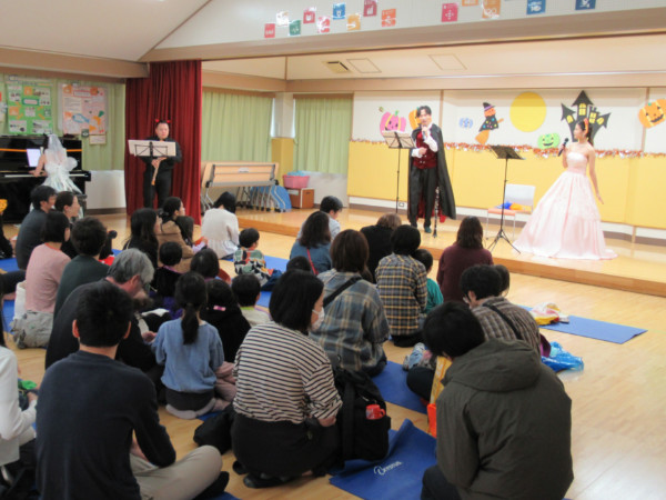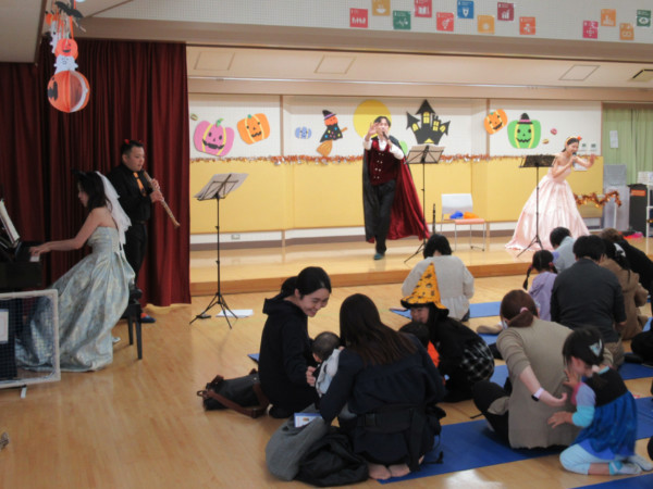 | 2025年10月25日(土) 「ハロウィンフェスタ」を開催しました!(ポスター) 森田由香氏の歌と楽器演奏を聴き、 一緒に歌ったり、踊ったり、その後、 子供たちのハロウィンファションショーがありました。 親子で楽しい時間を過ごしました。 |
