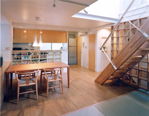 鉄骨3階建、2,3階の夫婦世帯と1階の弟世帯の2世帯住宅です。