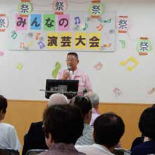 ![]() ☆ みんなの演芸大会 ☆ 平成29年 7月 31日(月) 主催:運営協議会 いきいき部会 ---------------------------- みなさんご自慢の歌や踊りを披露しました。 |