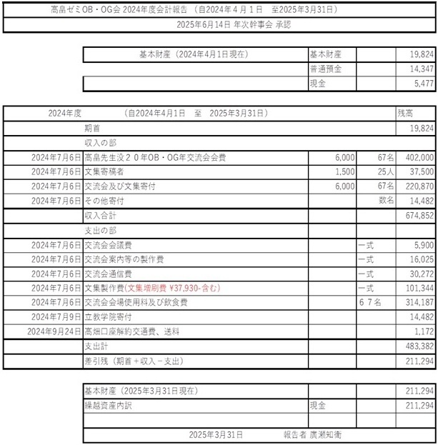 | 高畠ゼミOB・OG会 総会 議案説明書 (令和7年7月 書面議決用) |