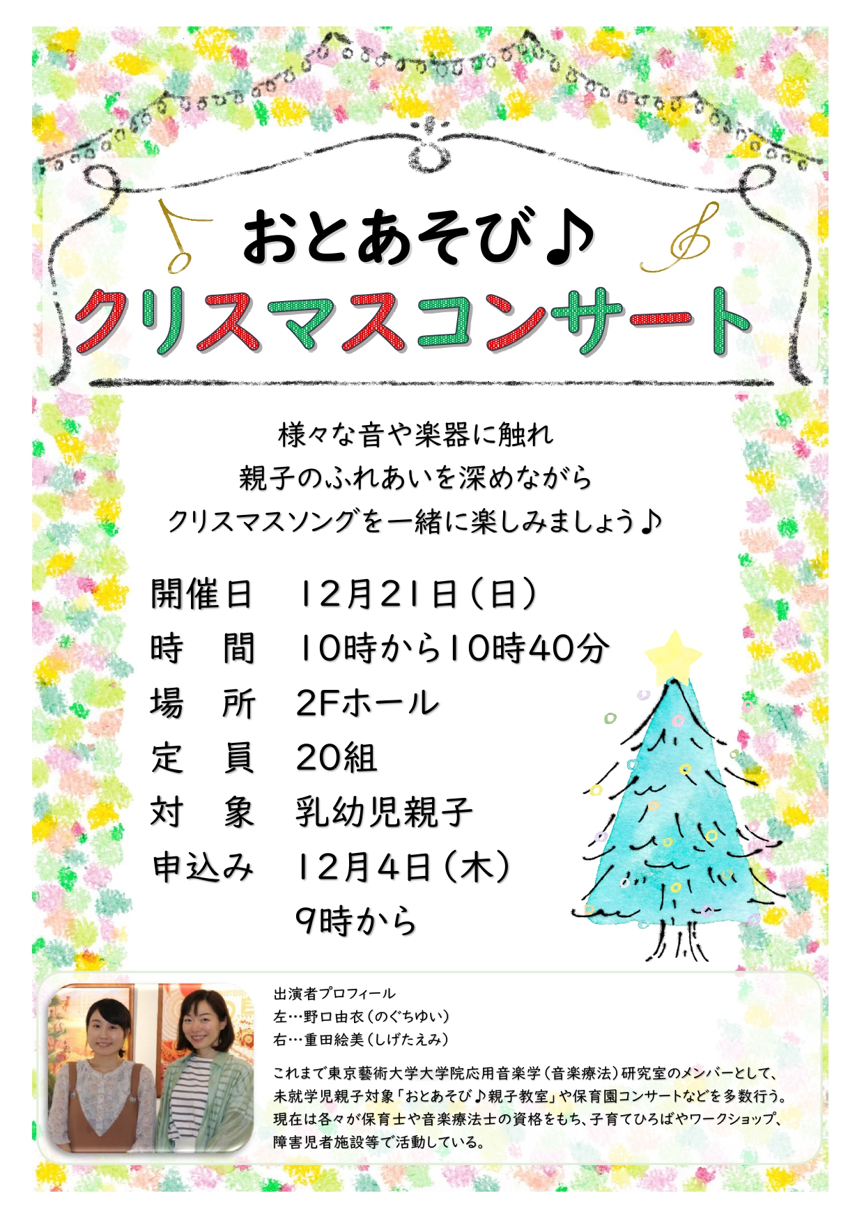 <6>12月21日(日)「おとあそび クリスマスコンサート」(乳幼児+保護者・要予約)10:30~10:40