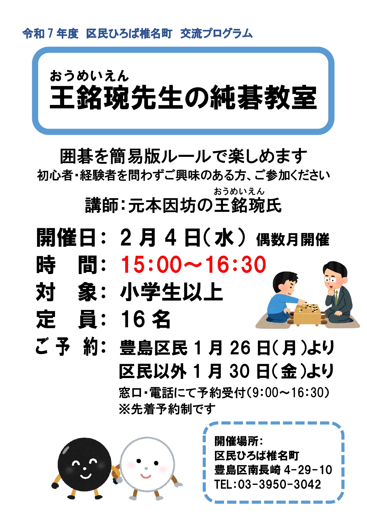<10>2月4日(水)「王銘琬先生の純碁教室」15:00~16:30(小学生以上・要予約)