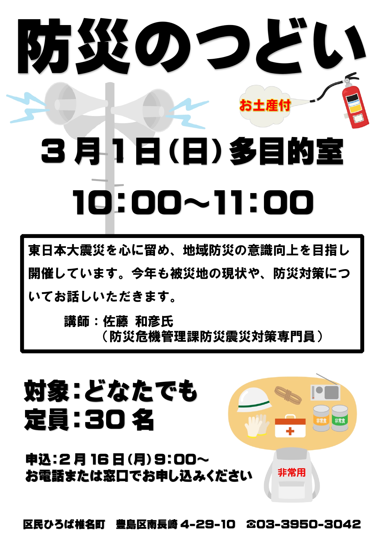 防災のつどい ■東日本震災を心に留め、地域防災 の意識向上を目指し開催いたします。