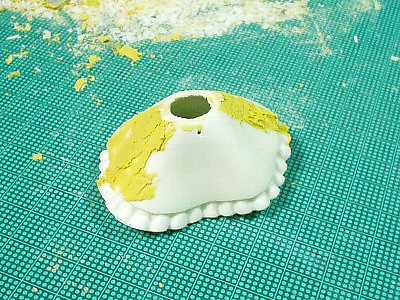 硬化前のポリパテは生クリームみたいな固さです。正確な形なんて出せるわけないので