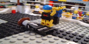JR「なんということだ!ヘルボトムが鉄階段へXXXを叩き付けた!」