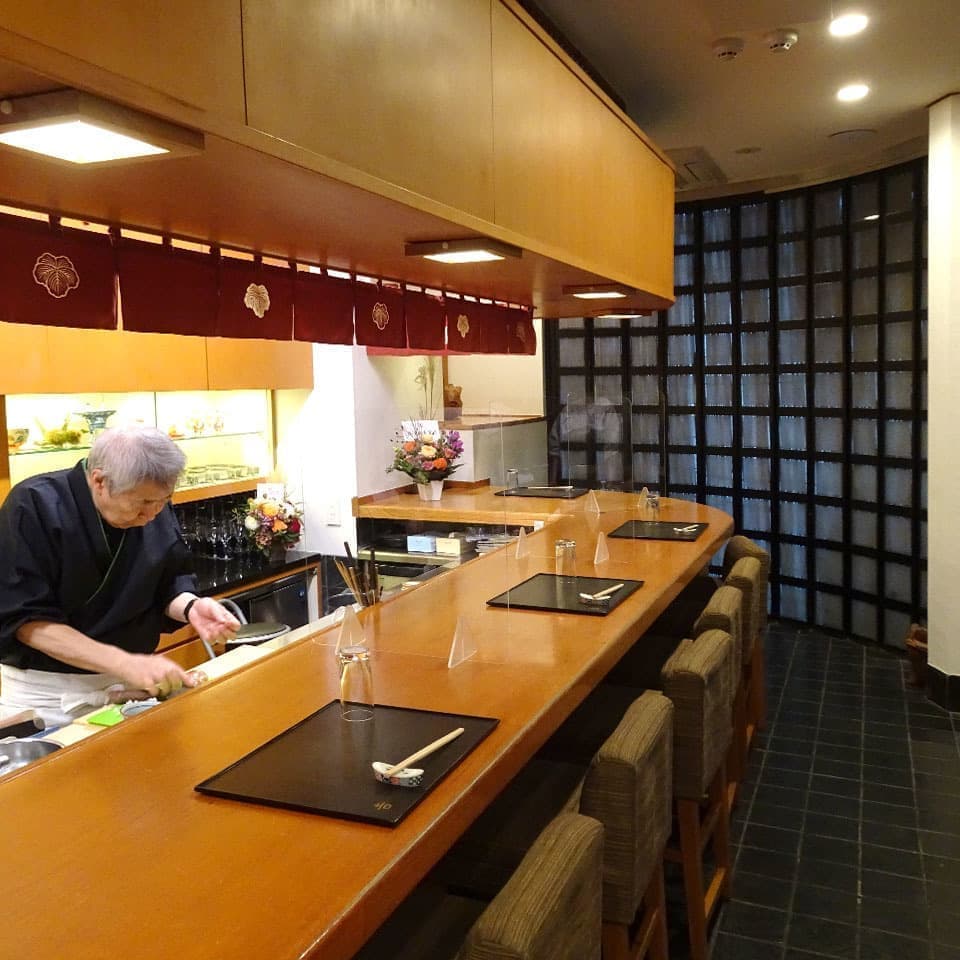 目の前で板さんの包丁さばき見ることができます。楽しい会話で素敵なひと時を。
